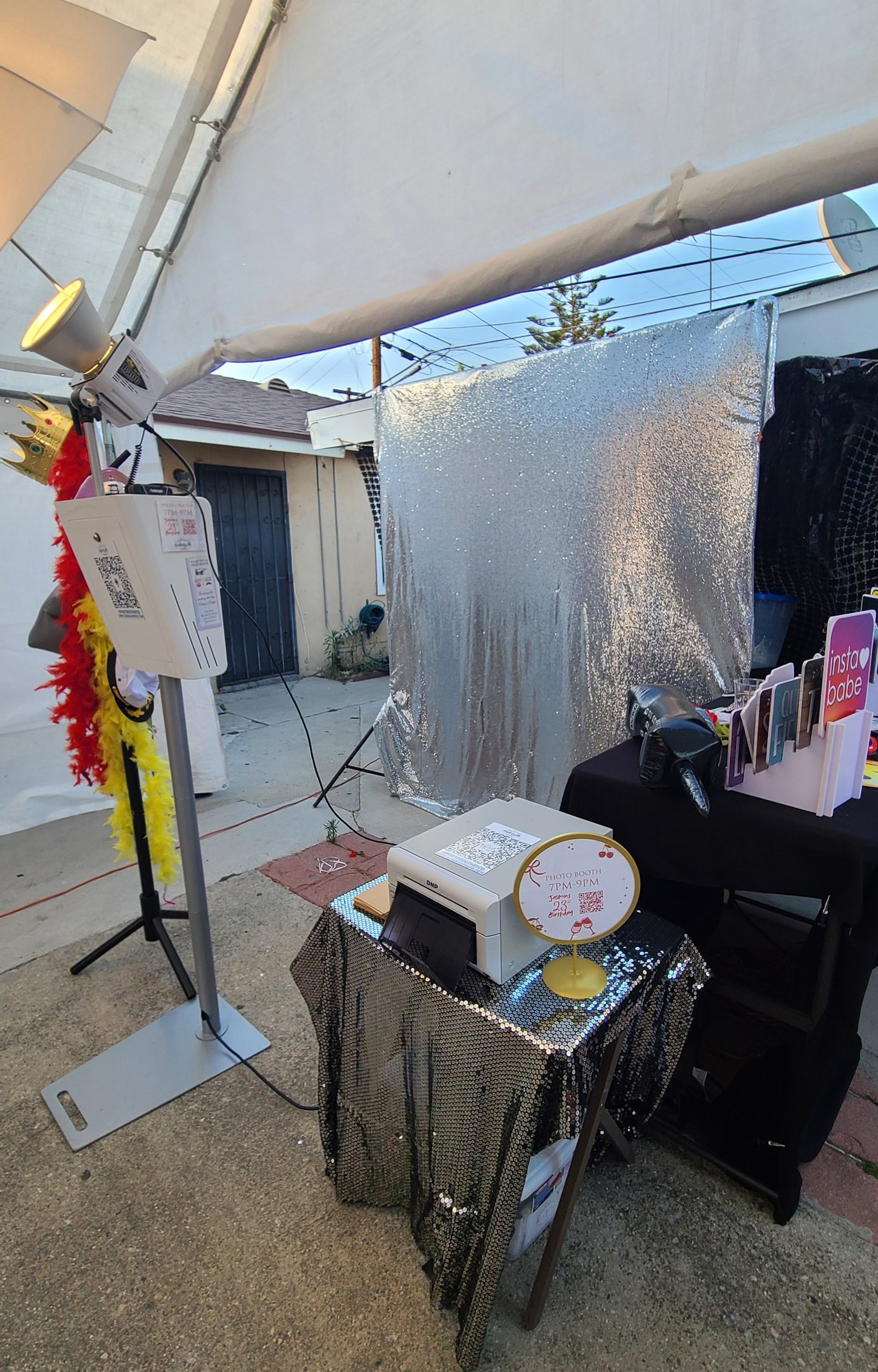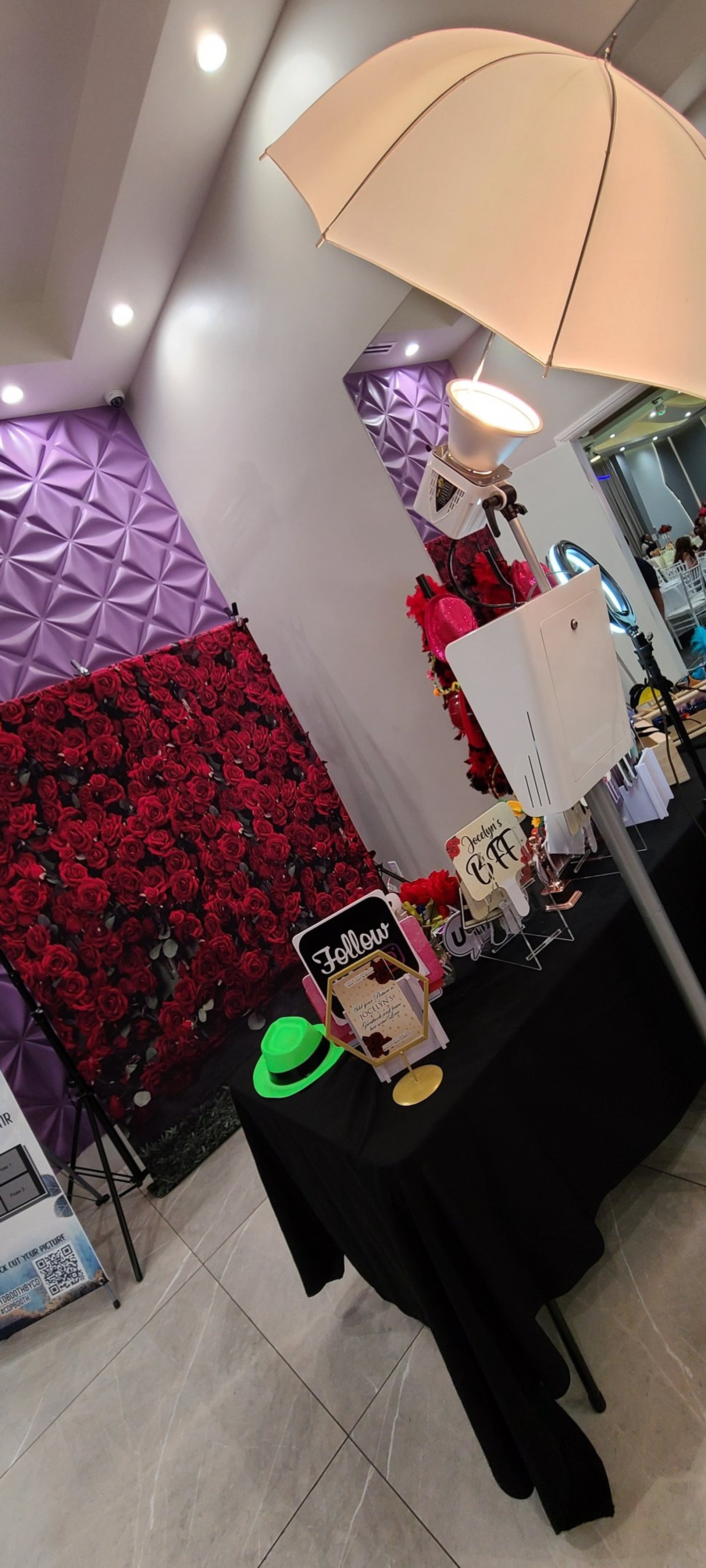 Our photo booths require at least an 8×8’ footprint, including an 8’ height clearance for the backdrop but an 12'x12' space is recommended.